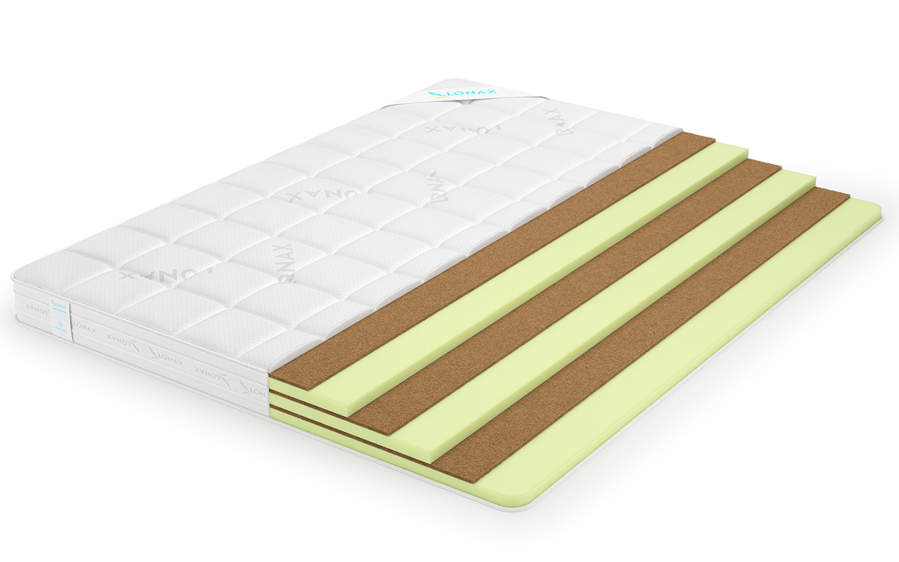 Наличие кокосового волокна толщиной 3 см. в составе придает матрасу жесткость, обеспечивает дополнительную поддержку позвоночника во время сна, формирует ортопедический эффект.
